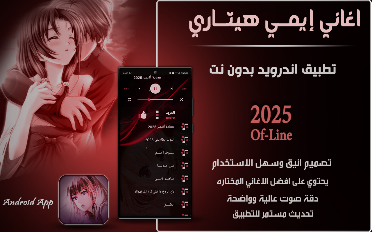 ★ 我為什麼要選擇這個應用程式?艾米·日塔里歌曲應用程式..? 因為它包含動漫歌曲,特別是藝術家 Rasha Rizk(又名 Amy Hitari)的歌曲,以及她所有被許多用戶欣賞和聆聽的 2025 年歌曲。