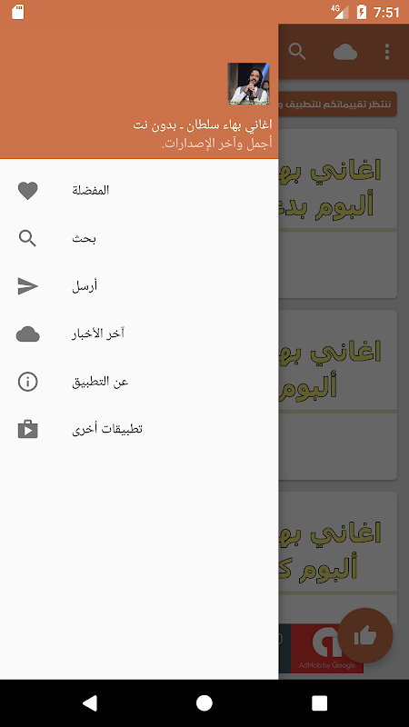 يعدكم هذا التطبيق الانيق بتقديم اغاني بهاء سلطان ـ بدون نت.