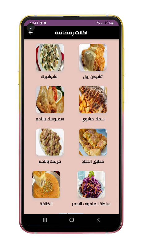 該應用程序還包含齋月菜餚,其中包含 2023 年齋月早餐的食譜,包括湯、齋月糖果和沙拉菜等開胃菜。