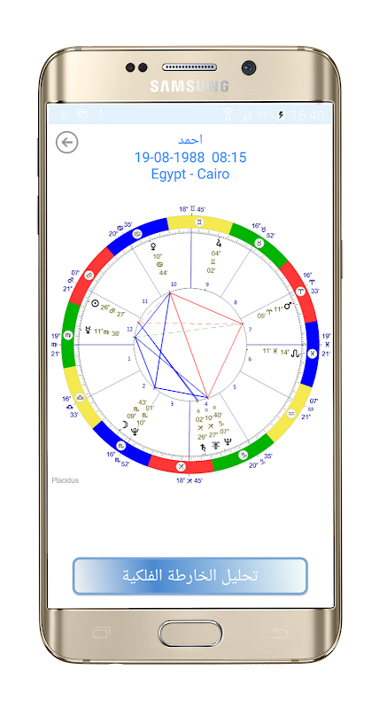 第一個也是唯一一個能夠為您提供個人天文圖或所謂的天文圖(圖表輪)的應用程序,其中包含出生時行星的位置的詳細信息和解釋,並獲得阿拉伯語的詳細報告,該報告比天文標誌的預期和注意要準確得多,因為該標誌的特徵是一般性的它並非絕對適用於標誌的所有者,但在輸入的信息準確無誤的情況下,尤其是出生時間,天文圖的解釋和分析更為準確,對我們也有很大的應用。