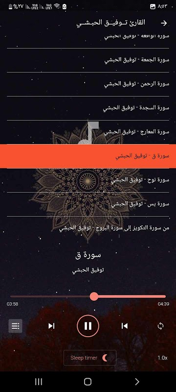 由背誦者謝赫·陶菲克·哈巴什 (Sheikh Tawfiq Al-Habashi) 朗誦的《古蘭經》,無需網絡,以高品質 MP3 背誦