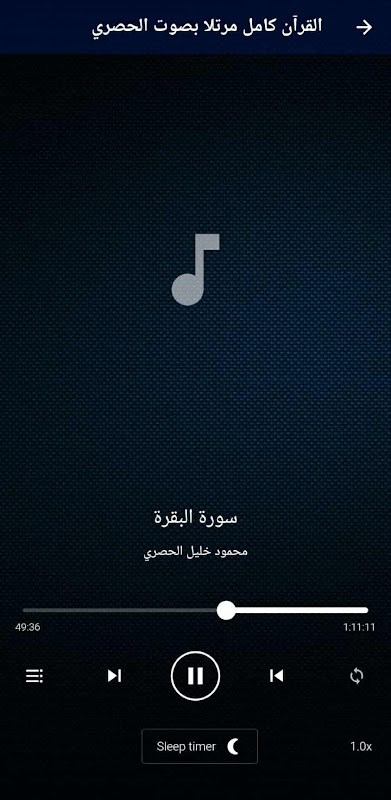 這款聆聽由阿爾·胡薩裡朗誦的《古蘭經》的應用程式完全不需要網路連線。您只需按照上述步驟操作,即可隨時隨地收聽應用程式中包含的所有音訊文件,無需將手機連接到網路。