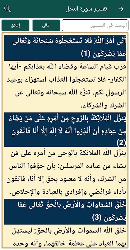 وضع القراءة الليلية لإراحة العينين اثناء قراءة القرآن الكريم. ميزة تكبير الخط لتسهيل قراءة سور القرآن الكريم.