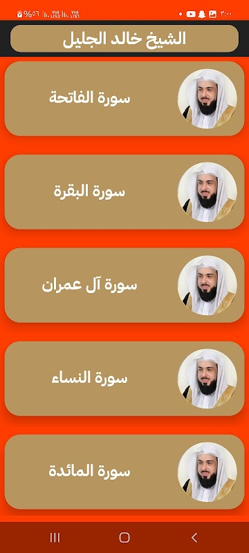 下載應用程式後,您可以隨時隨地、完全輕鬆地以謝赫哈立德·賈利勒的聲音免費聆聽《古蘭經》的章節。