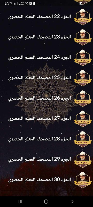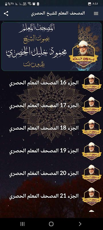 謝赫·馬哈茂德·哈利勒·胡薩裡(Sheikh Mahmoud Khalil Al-Husari) 教授的《古蘭經》的應用無需互聯網,您就可以聆聽《古蘭經》的整個後半部分,其聲音清晰,語調完美,這是謝赫·馬哈茂德·哈利勒·胡薩裡(Sheikh Mahmoud Khalil Al-Husari) 所特有的。下運行,這是為了方便兒童和成人背誦和記憶這本書。
