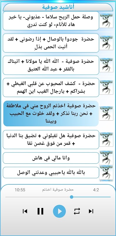 ✓- امكانية تكرار الانشودة بعد تفعيل زر التكرار