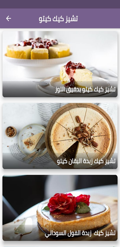يحتوي تطبيق شيز كيك كيتو على مجموعة من وصفات التشيز كيك كيتوني لمتبعي حمية نظام الكيتو دايت