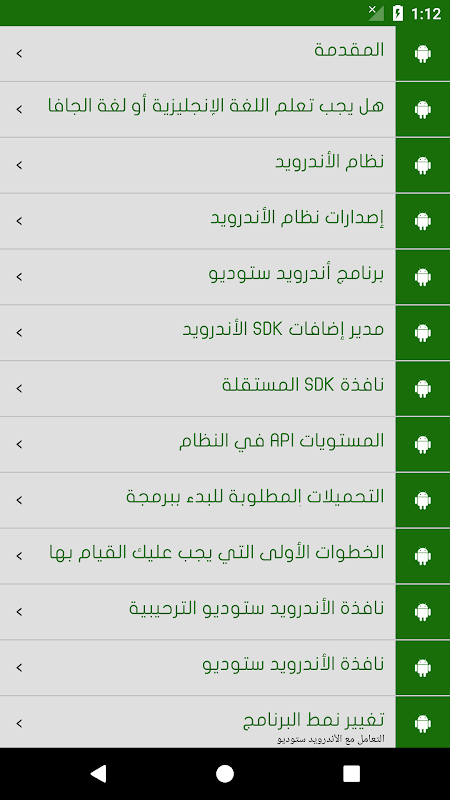 我要學好英語或Java語言的應用程序編程,系統Alandroed,Android系統的版本,Android的工作室項目經理附加Alandroed:(SDK管理器)窗口(獨立SDK管理器),在系統層面:(API級別),需要下載啟動編寫Android應用程序,你必須做的第一步,窗口Alandroed工作室的歡迎,窗口Alandroed工作室,處理Alandroed工作室,改變節目風格,助理智能,解決令人費解的信件問題,持倉重點項目,進口全自動支持辦事處,為了編譯器代碼,事情你應該知道開始編程Android應用程序之前,創建針對Android的第一個項目,說明默認代碼,告訴你一開始創建應用程序的Android項目,進口Alaclaibs為Android Studio項目,文件夾和項目文件,解釋Alvailos值的文件夾,說明AndroidManifest.xml文件,訪問該項目的資源,編輯阿南一般應用,以及為應用程序的圖標,識別接口Alandroed裝置,識別接口佈局,創建仿真AVD,模擬器基因運動,預覽項目Alandroed在您的手機,數據類型,變量和值,內Alliaot最重要的內容,解釋元素的最重要的特徵,顯示屬性和Alaratva P,方向屬性,屬性margin,padding屬性,重力屬性,屬性權重,ID屬性,找出最重要的代碼的軟件,最常用:Java中,功能Alaktefta生命週期,第一個項目:1.你好O,應用Alandroed格式,長文本,含Tsaiba鏈接,迫使用戶填寫文本字段,消息敬酒,警報或附註窗口,第一個項目文本:噢你好..多國語言,我怎麼Bbbina的Android項目,措施是正確的,導出項目到Android的.apk應用。
