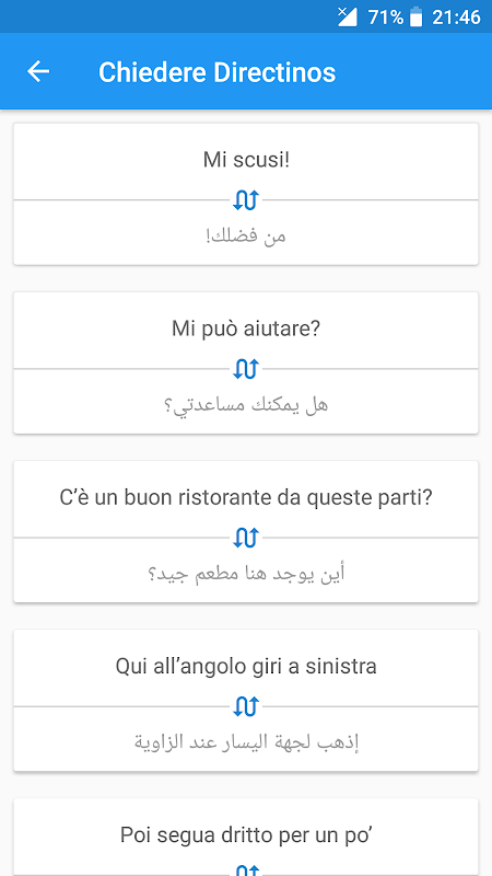 عرض الجمل و الكلمات بالإيطالية ومعناها بالعربية .◄