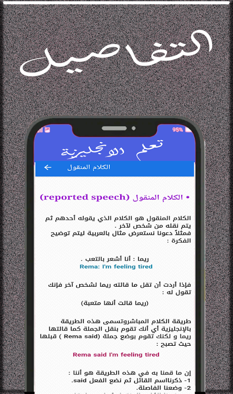 تعلم اللغة الانجليزية بالصوت كلمات وعبارات و اختبارات تطبيق بسمح لك بتعلم اللغة الانجليزية بسهولة و اتقان اللغة الانجليزية باسهل طريقة فهو يحتوي على امثلة تساعدك على فهم اللغة الانجليزية و ايضا يحتوي على اكثر من 25 صنف وكل قسم يحتوي على الكثيير من الكلمات و الامثلة للفهم بسهولة.