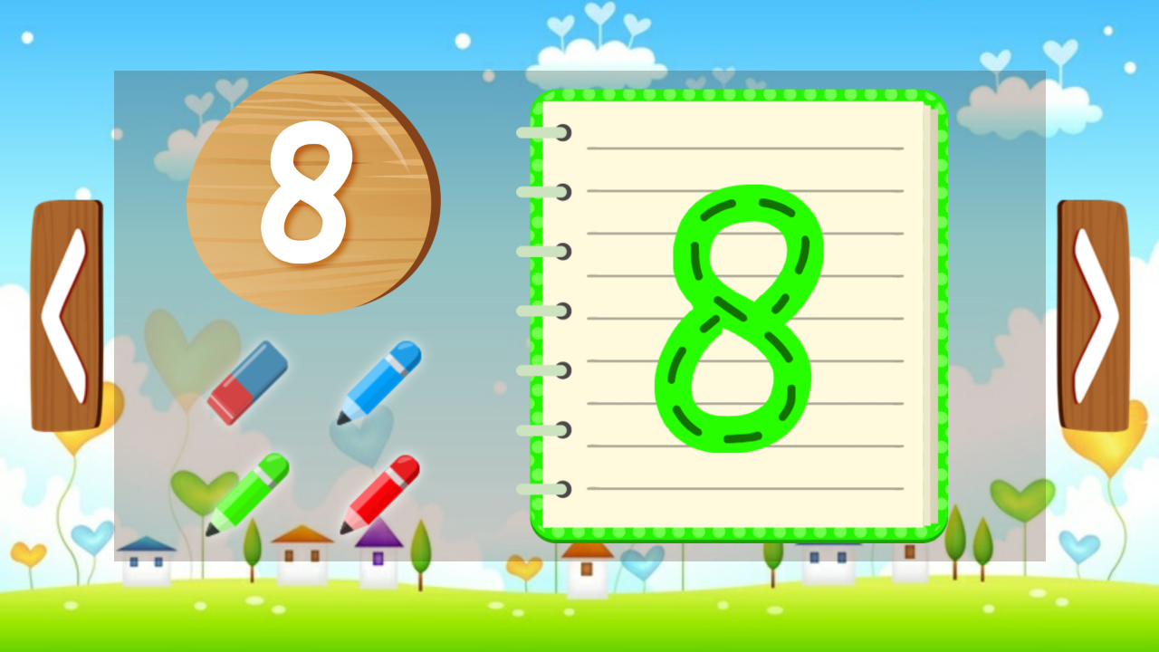 該應用程序具有高品質的設計,清晰,整潔,有助於兒童快速學習,由於其淺色和歡快,所以允許孩子用手指或專用於屏幕的筆直接在屏幕上寫數字,並根據圖片跟隨數字的路徑。