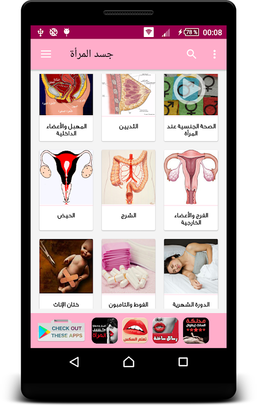 تطبيق جسد المرأة - بدون أنترنت يحتوي على الكثير من المقالات الرائعة والتي تهم المرأة والرجل , يمكن ارسالها عبر وسائل التواصل الاجتماعي ويوجد في هذا التطبيق مجموعة من المقالات المفيدة للنساء، في مجالات متعددة كالثديين و والمهبل و الأعضاء الداخلية و الخارجية و مقالات تخص الدورة الشهرية و و الحيض و الكثير من المواضيع التي تستحق قرائتها، أتمنى أن ينال هذا التطبيق إعجابكم