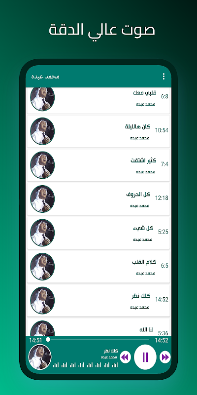 هذا تطبيق يضم روائع محمد عبده بودووبدون الحاون للحاͩ للاتصال بالانترنت。 واذا كنت من محبي الاستماع الى اغاني محمد عبده الطويلة بدون انترنت بالعربية فان تطبيق اغاني محمد عبده بدون نت سيتيح لك الاستماع لمزيج من التقاليد واصالة الفنان محمد عبده بدون انترنت. كل اغاني محمد عبده ستودون انترنت وي تطبيق دو بتصميم انيق وسهل الاستخدسق وسهل الاستخدسووـ 。