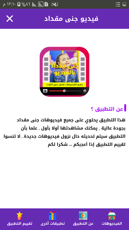 تطبيق جنى مقداد بالفيديو شاهد جميع فيديوهات جنى مقداد