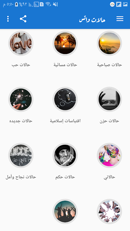 Kalimat應用程序,即所謂的無需互聯網的書面WhatsApp狀態,提供了大量有影響力的句子和單詞,深刻表達了人類在不同時間的狀況。該應用程序包含早上的WhatsApp狀態、晚上的WhatsApp狀態等等。
