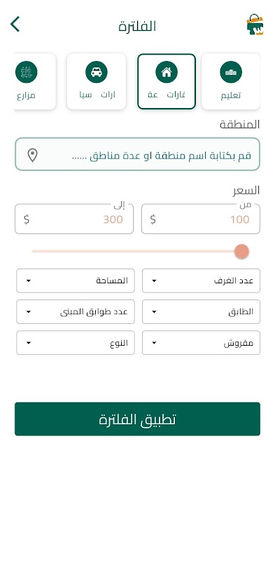 房地產:探索各種待售或出租的房產。無論您是在尋找現代公寓、寬敞別墅、投資商店、建築用地,還是住宅小區,Souqak 都能讓您精準篩選搜尋結果。