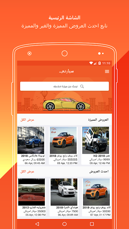 يمكنك الآن تصفح احدث عروض السيارات الجديدة ، والسيارات المستعملة من معارض وحراجات اليمن مباشرة على جوالك من خلال تطبيق سيارتي .