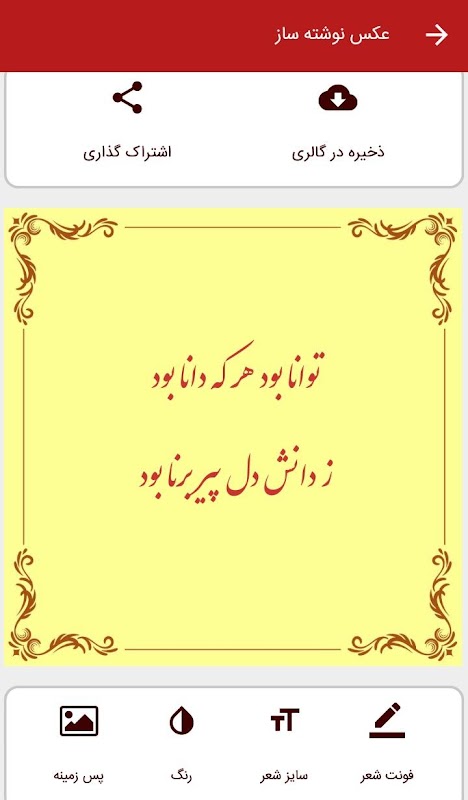 • قابلیت اضافه کردن اشعار به فهرست علاقه مندی ها.