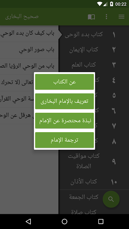 Sahih Al-Bukhari應用程序是Android上的一個伊斯蘭應用程序,其中包含“上帝的使者的事情上的Al-Jameen Al-Musnad Al-Sahih Al-Muqasarah”這本書的所有聖訓,願上帝的祈禱與和平降臨在他,他的聖訓和他的時代,稱為Sahih Al-Bukhari