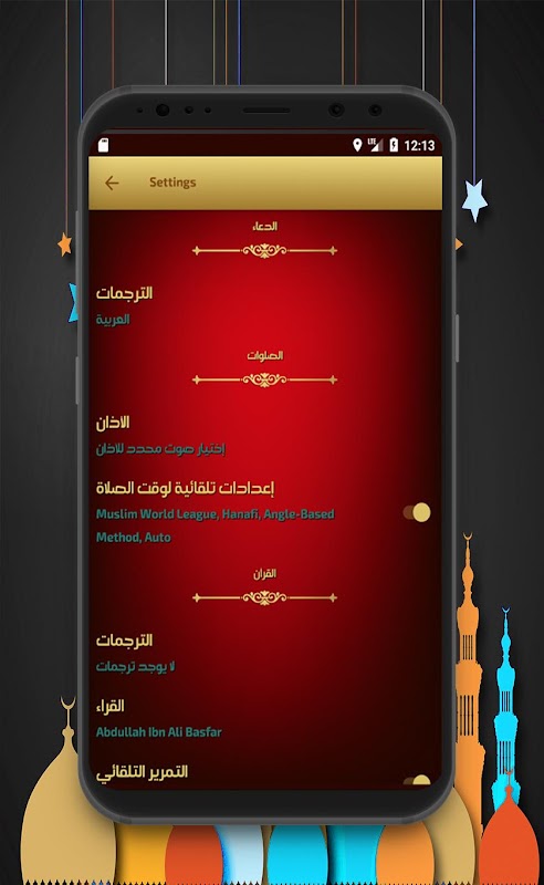 - التحويل إلى الوضع الصامت تلقائيا، مع توفر الإعدادات لكل صلاة على حدة