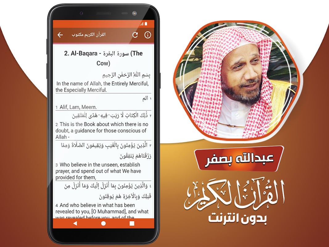 Qu《古蘭經》應用程序包含讀者阿卜杜拉·巴斯法爾(Abdullah Basfar)的聲音,無需網絡即可收聽古蘭經的古蘭經,並且該應用程序的特點是可免費朗誦《古蘭經》。