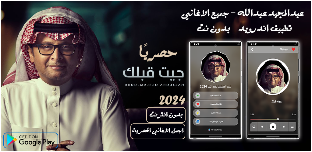 • 2024年在沒有網路的情況下持續更新阿卜杜勒·馬吉德·阿卜杜拉的歌曲