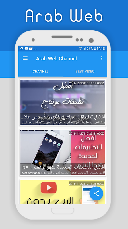 تطبيق قناة عرب ويب هو تطبيق عربي يحتوى على مقاطع فيديو قناة عرب ويب على اليوتيوب وأيضا على مقاطع لقنوات أخرى في مجال التقنية.