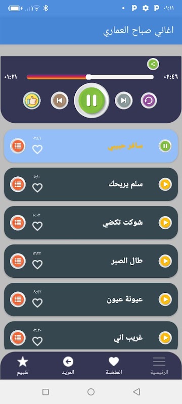 如果您喜歡 aghani Sabah Al-Amari 的歌曲在沒有網絡的情況下的應用,請不要忘記給我們留下評論,並以五顆星評價 2021 年的歌曲在沒有網絡的情況下的應用,請