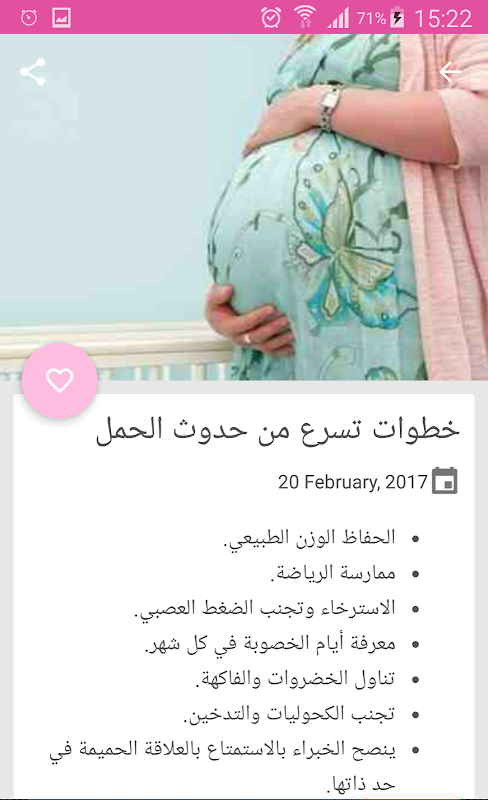قسم الحمل والرضاعة: هذا الفضاء خاصة بالحوامل و كل وصفات الوقاية والعلاج من مشاكل و الاعرض الجانبية للحمل