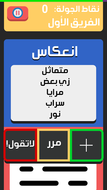 لعبة قول بس لاتقول عبارة عن لعبة كلمات تتكون من فريقين, كل فريق