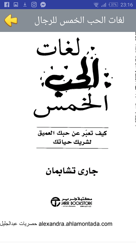 هل تتحدث أنت و شريك حياتك لغة الحب نفسها؟ هو يرسل لك الزهور عندما يكون ما تحتاجين إليه حقاً هو وقت للمحادثة، و هي تعانقك في الوقت الذي تحتاج فيه بالفعل إلى وجبة منزلية جيدة الطهي… لا تكمن المشكلة في حبك، بل تكمن في لغتك للحب. في هذا الكتاب الذي حقق أفضل مبيعات على المستوى العالمي، يكشف الدكتور ” جاري تشابمان” عن الكيفية التي يعبر بها أشخاص مختلفون عن حبهم بطريقة متباينة. و في الحقيقة هناك خمس لغات متعددة للحب و هي: تكريس الوقت، كلمات التشجيع، تبادل الهدايا، الأعمال الخدمية، الاتصال البدني. ما يعني لك الكثير ربما لا يعني شيئاً بالنسبة لشريك حياتك، و لكن أخيراً ستجد المفتاح لفهم احتياجات الطرف الآخر الخاصة. طبق المبادئ الصحيحة، و تعلم اللغة الصحيحة. و قريباً ستستمتع بالإحساس العميق بالرضا و السعادة لكونك قادراً على التعبير عن الحب، و لشعورك بأنك محبوب بالفعل لقاء هذا.