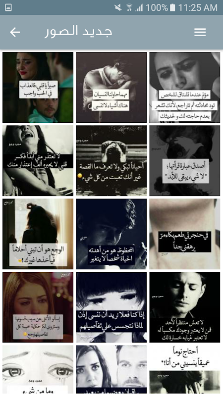 يوجد في تطبيق صور مجرد وجع يضم مجموعة صور جميلة ورائعة .اكبر مجموعة صور حزينة ومؤلمة ومعبرة تبكي, صور وجوه أطفال حزينة, صور عتاب للبنات، أجمل صور حزن وعتاب وفراق حالات حب نقوم بتحديث التطبيق بشكل مستمر قم بتجربة التطبيق وسوف تجد فيه كل ماتبحث عنة من صور وعبارات حزينة .