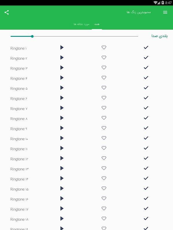 مجموعه حدود 45 زنگ خور ملایم با کیفیت صدای عالی.اگر از گشتن دنبال یه آهنگ زنگ خاص، زیبا و سنگین برای گوشیتون خسته شدید پس این اپلیکیشن رو امتحان کنید