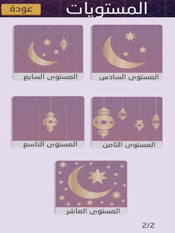 - تحتوي على خمس مستويات في كل مستوى عشر اسئلة.