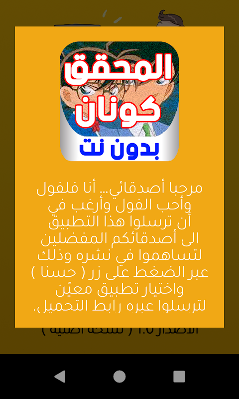 أتمني منكم أن تتركوا تعليقاتكم وتقيم تطبيق حلقات رسوم المحقق كونان بدون نت
