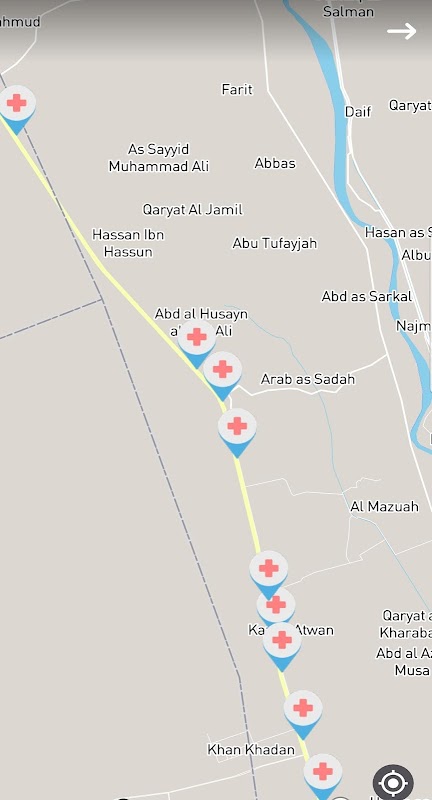 دليل زائري ابي عبد الله الحسين (ع) للمراكز الطبية ومراكز ارشادالتائهين وأهم النقاط الدالة على طريق "ياحسين" بين النجف الأشرف وكربلاء المقدسة