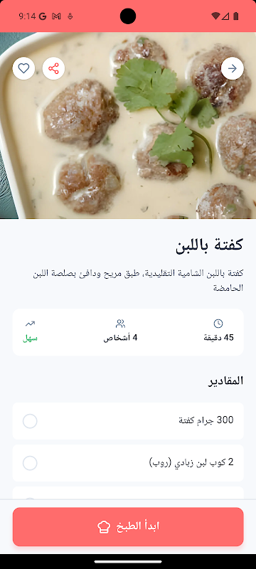 🔸 المفضلة – احفظ وصفاتك المفضلة للوصول السريع إليها