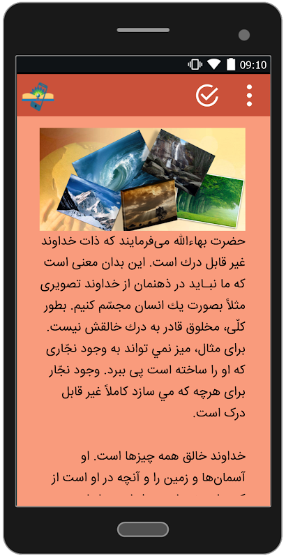 ائلیکیشن معرفی دیانت بهایی بر اساس مطالب کتاب 6 روحی گفتگوهای انا و ایملیا تهیه شده است .