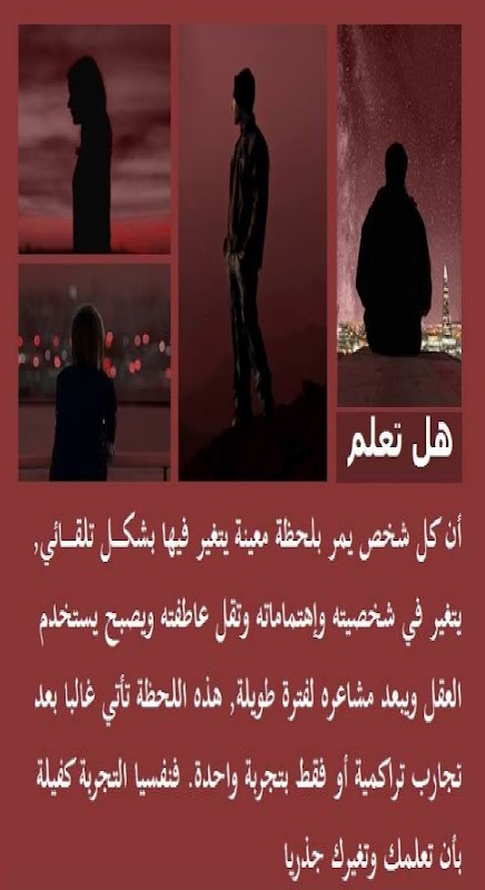 معلومات ثقافية تنفعك في الحياة تطبيق مجاني موجود على متجر جوجل بلاي به صور ثقافة عامة من الدروري إدراكها ستفيدك وتنفعك في حياتك فقط قم بضغط زر تحميل ثم ثقف نفسك بالقراءة فهذه الصور تحتوي على المعلومات الثقافية الراقية والمفيدة.