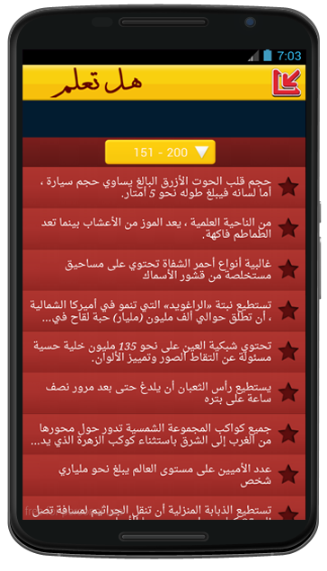 معلومات مفيدة تجعلك تبحر في بحر المعلومات القيمة ، و المستمرة بإذن الله تعالى بفضلكم و بفضل تقييمكم لنا و ليستمر التطبيق في العطاء .