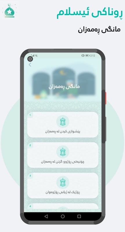 ئەپلیکەیشنی ڕوناکی ئیسلام ئەم بەشانەی لەخۆ گرتووە :