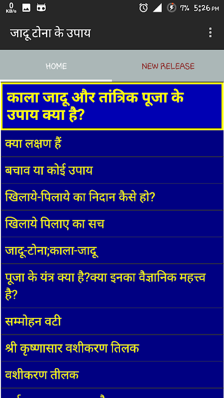 Black magic is used by jealous, malicious persons who take pleasure in the misfortune of others, easily cast by anyone knowing a little Tantrik magic, Siddhi or other low level magic. Jadu Tona or other black magic can be deep, uncharacteristic or abnormal behaviour, heaviness or erratic heartbeat, farreaching, chronic, causing unnatural states, poor health, mental instability, negative thoughts, constriction of throat, depression, bad decision making, inexplicable bruises, sores, etc.Kali kitab or Jadu totke app is full in hindi language.