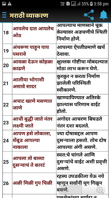 Marathi Vyakaran(Marathi Grammar) application describe many grammar topics in detailed in Marathi language.