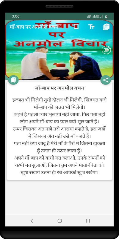मातापिताहमारेजीवनमेंक्यामहत्वरखतेहैयेसभीजानतेहैक्योंकिहमारेजीवनकीशुरुआतउन्हीसेहोतीहैसभीअपनेमातापिताकोप्यारचाहतेहैऔरमातापिताभीहीचाहतेहैकीउनकेबच्चेउन्हेंप्रेमकरें。 बच्चोकाबचपनजोइतनेआरामऔरमस्तीमेंगुजरताहैवोमातापिताकीहीदेनहोताहै。 इसलिएहमेउनकाआदरऔरसत्कारकरनाचाचा