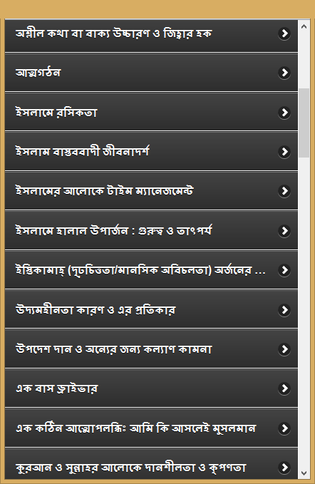 একজন খাঁটি মুসলিম হতে হলে কি কি চারিত্রিক গুণাবলি অর্জন করতে হয় সেগুলোর আলোচনা নিয়ে এই অ্যাপ।