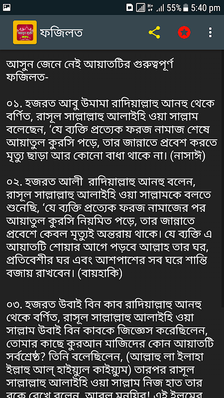 আপনারা এই অ্যাপে পাবেন আয়াতুল কুরসী বাংলা ও আরবী, এবং আয়াতুল কুরসি ও এর ফজিলত, Ayatul Kursi in Bangla, ও জরুরি আমল, আয়াতুল কুরসী, ফজিলত পূর্ণ সুরা sura, সূরা সমুহ এবং ইসলামিক সম্পর্কে আরও অনেক কিছু।