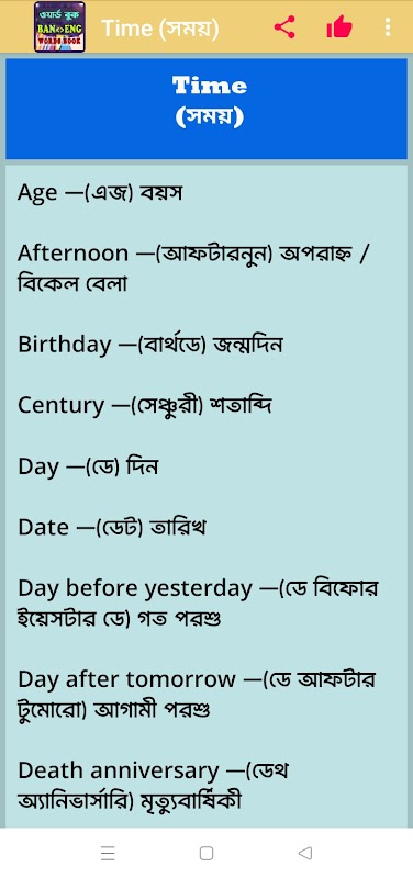 প্রতিদিন ব্যবহৃত বিভিন্নইংব াঅর্থশিখুনখুবসহজেএঅ্যাপেরাাধদ এ অ্যাপটি ব্যবহার করলে আপনি দ০ব দ ন ইংরেজি শব্দেরঅর্থ শিখতেপদদবদদদদদদদদ সাজানো হয়েছে আমরা প্রতিদিনববদদ ংরেজি শব্দ দ্বারা যার প্রদদ য টাগরিওউচ্চারণসহ। যোগাযোগের একমাত্র মাধ্যিহলইদদদদদ আমাদের সবচেয়ে বেশি সমস্যা হয় দদ ননিয়ে। ইংরেজি উচ্চারন সঠিক না হলেকদা বদদ যসমস্যাহয়। ছোট বেলা থেকে যদি ইংরেজি উচ্িারদদদ খা যায় তাহলে আর এই অবস্থা দাদ়দদদ চেষ্টা করেছি সঠিক শব্দের িঠিক দদদ বে ইংরেজি শব্দ উচ্চারণ করি০িভদধ ০দ া লো করতে অ্যাপটি আপনার উপকার করব
