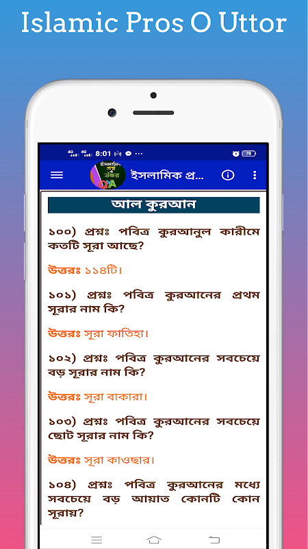 এই অ্যাপটির দ্বারা আপনি সহজে ইসলামিক কুইজ প্রশ্ন ও উত্তর ও ইসলামিক জিজ্ঞাসা ও উত্তর সম্পর্কে জানতে পারবেন ।