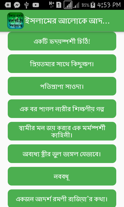 আমাদের এই এপ্সটি সাজানো হয়েছে আদর্শ স্বামী-স্ত্রীর শিক্ষামূলক কিছু গল্প নিয়ে ।