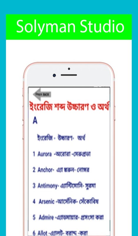 অ্যাপটি ব্যবহার করে আপনি সহজেই যেকোন ইংরেজি শব্দের বাংলা অর্থ জানতে পারবেন আর আপনার ইংরেজি ভোকাবুলারি তথা শব্দ ভাণ্ডার বাড়াতে বিশেষ সহায়তা করবে।